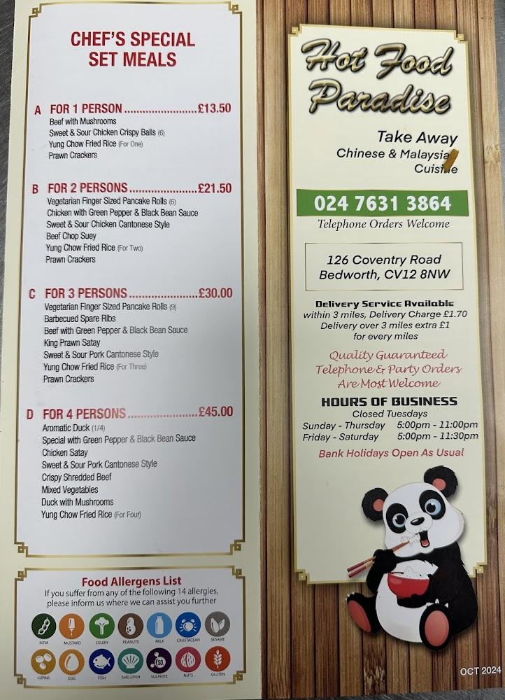 Bedworth is a vibrant town with a notable culinary scene, and Hot Food Paradise fits right into that narrative. Nestled conveniently on Coventry Road, it attracts diners with its welcoming atmosphere and friendly service. The takeaway service here is impressive; phone ahead or visit in person for a quick yet satisfying experience. What makes this place special is its commitment to flavor and portion size, often filled with generous servings that keep customers coming back. And with the bonus of being wheelchair accessible, it opens its doors to every diner in the community. Plus, ample free street parking surrounding the restaurant means convenient access, whether you’re just running by or stopping in for a meal with friends.